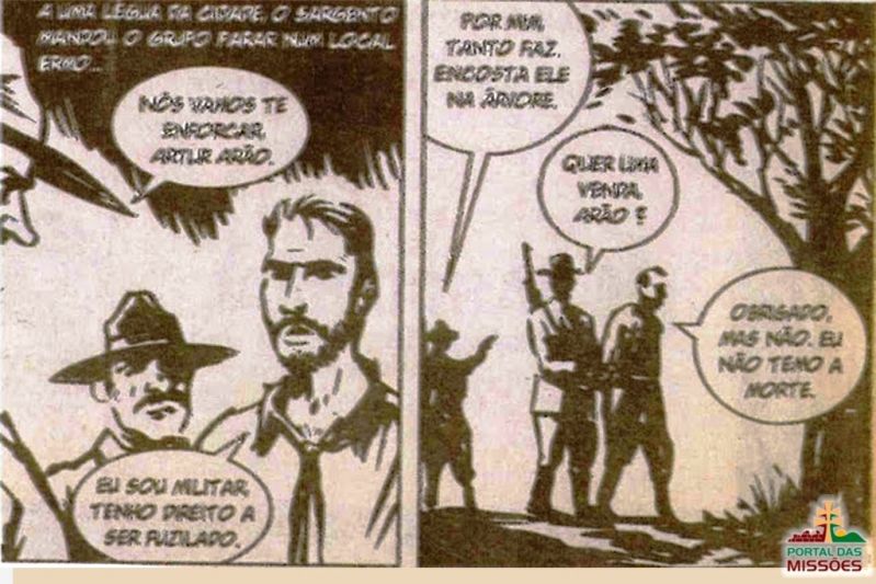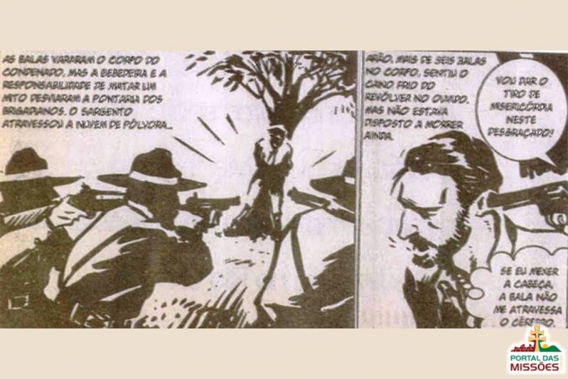 ​          O episódio do seu fuzilamento está representado abaixo, em quadrinhos.