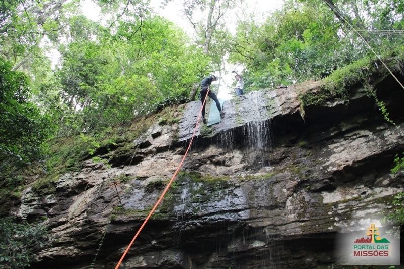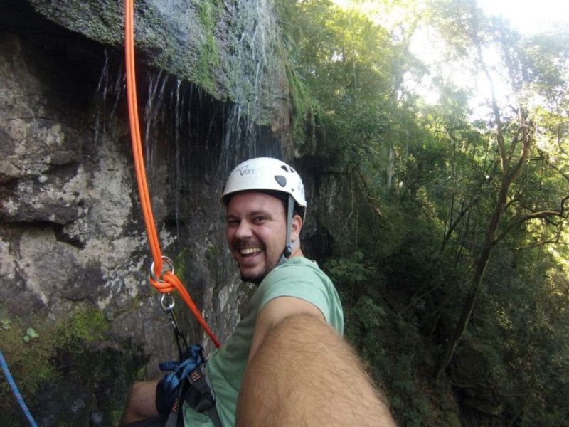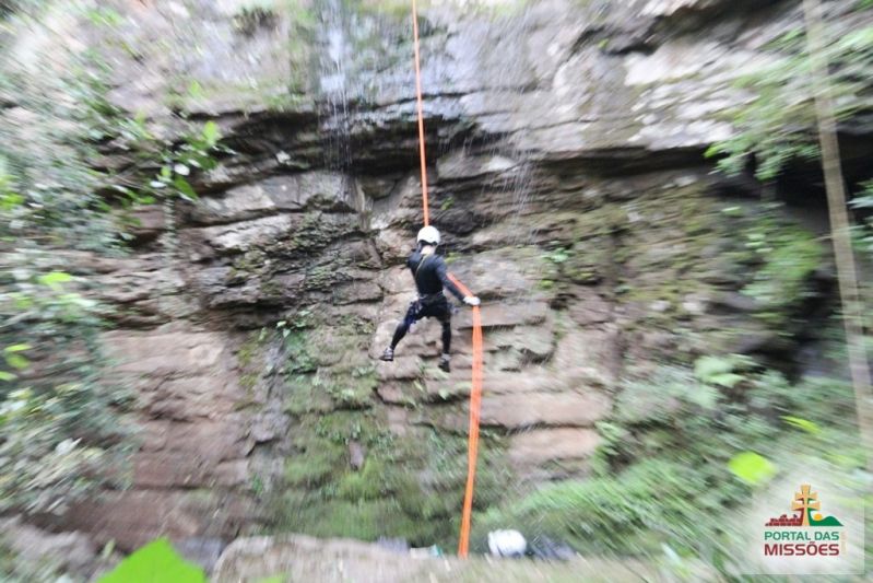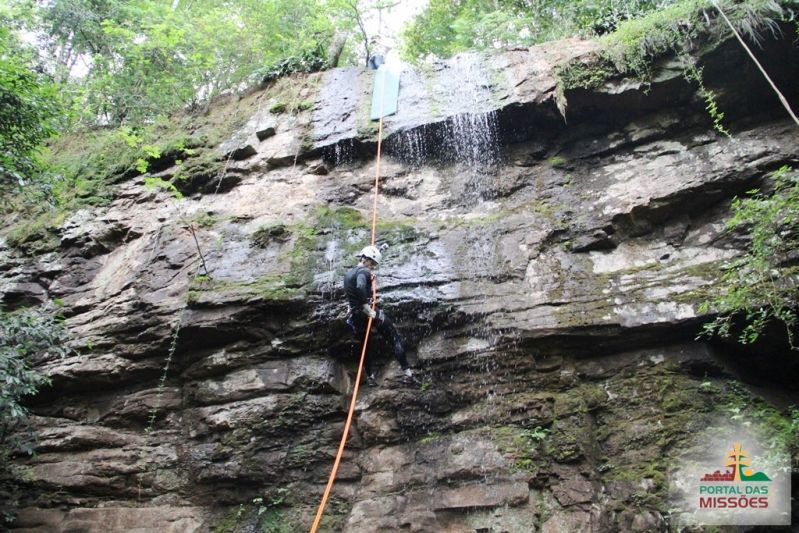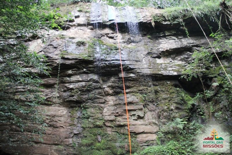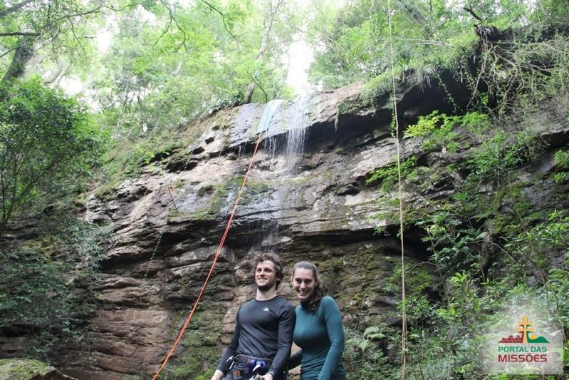 Cascata perfeita para a prática de cascading (rapel na cascata) e trilhas ecológicas. O aventureiro desce de rapel uma parede de pedra de 14 metros, com uma refrescante e suave água corrente.