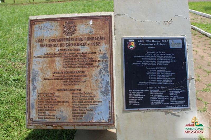 São Borja foi a primeira redução fundada pelos jesuítas, em 1682 e este monumento inaugurado em 1982, por ocasião dos 300 anos de fundação. Projeto do arquiteto Gerson Vigna. Projeto executado por Sérgio Vigna, engenheiro civil e Antonio Vigna, mestre de obras. O monumento comemorativo representa em cada painel 100 anos da fundação: O primeiro representado pelos padres jesuítas, o segundo pelos gaúchos e a criação de gado e o terceiro pela mecanização da agricultura.