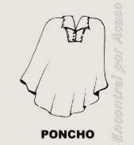 - De lã espessa, formato retangular, com extremidades arredondadas e franjadas, possui uma gola aberta onde se enfia a cabeça.