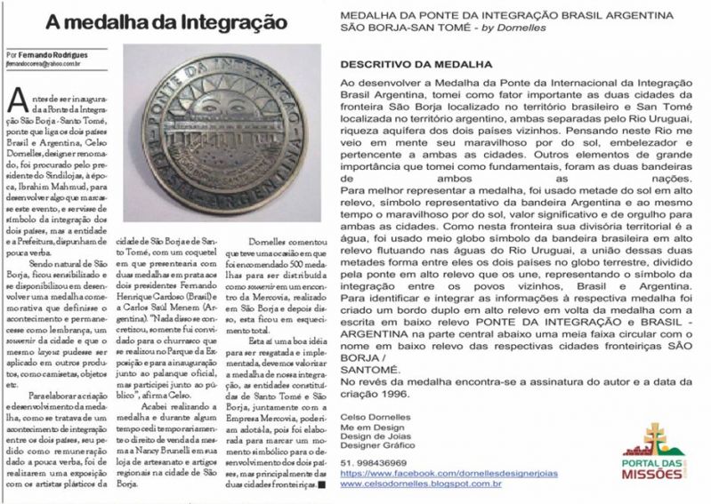 A Ponte Internacional da Integração, também conhecida como ponte internacional São Borja - Santo Tomé, é uma ponte sobre o Rio Uruguai, que liga os municípios de São Borja no Brasil e Santo Tomé na Argentina. Através da Ponte da Integração é possível visitar a República Argentina e desfrutar de excelentes atrações. Em Santo Tomé, por exemplo, há diversos passeios e lugares que valem a pena conhecer.