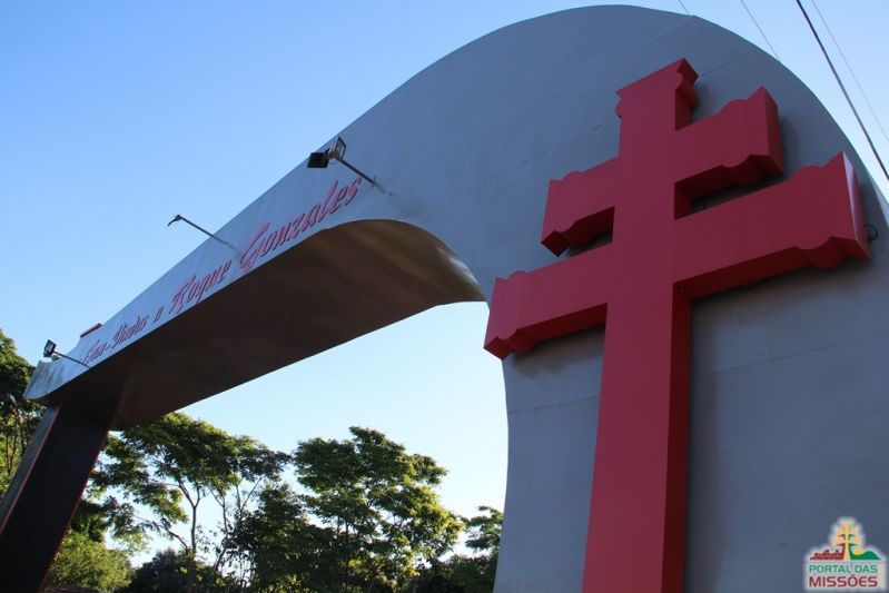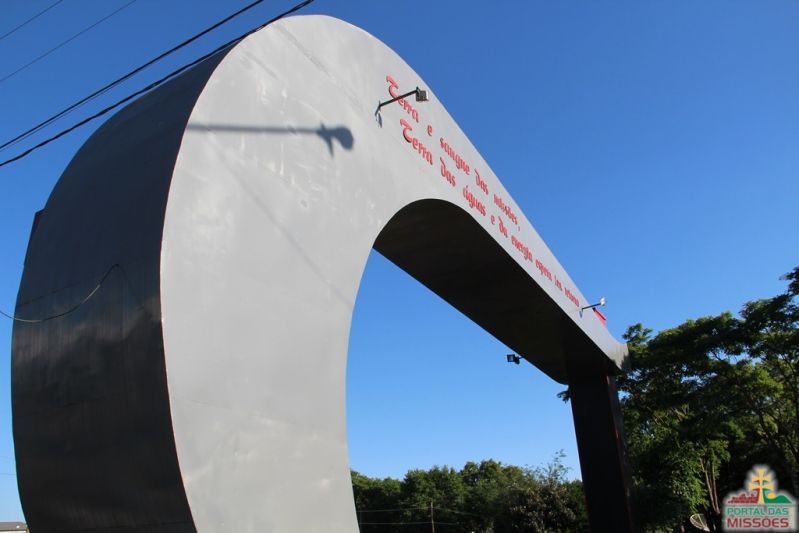 Cidade conhecida como o sangue das Missões este pórtico é inspirado na lita dos Jesuítas e na Cruz Missioneira.