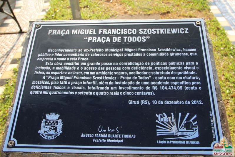 Na manhã do dia 10 de dezembro 2012, foi inaugurada a Praça Miguel Francisco Szostkiewicz – Praça de Todos, especialmente planejada para auxiliar no tratamento médico dos pacientes do Hospital São José que possuam deficiência física e visual, além de possibilitar o entretenimento e o lazer a todos os giruaenses e visitantes, independentemente de eventuais limitações físicas.