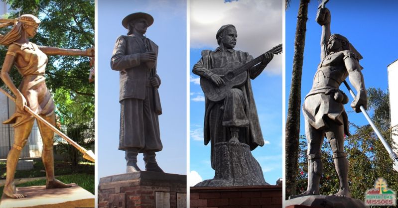 Mais imagens de pontos turisticos e dicas de Roteiros pela Região das Missões. Em São Borja, voce tem de conhecer na Praça Getúlio Vargas o Monumento de ResistênciaMonumento do Tricentenário tem um monumento interessantissimo de uma história e homenagem que envolve muita consideração Monumento ao Cavalo Amigo, ou no cais do Porto Yemanjá, Raínha do Marem São Luiz Gonzaga conheça o monumento a mulher indígena em frente a Agência dos CorreiosEstátua Sepé TiarajuForum Justiça Missioneira e a estátua que tem mudado toda uma região pela imponencia de sua imagem e a história de vida que representa Monumento a Jayme Caetano Braunquando chegar em Bossoroca tire uma foto do Monumento Noel Guaranyem Caibaté temos o Monumento aos Santos Mártires e no interior do Santuário de Caaró temos o Monumento ao Coração do Santo Roque Gonzáles, em Guarani das Missões temos a presença do Monumento ao Papa João Paulo II e ao precursor que trouxe a soja para o Brasil o cientista Ceslau Mario Odrowaz Biezanko, São Pedro do Butiá Homenagem as Mãos do Trabalhador e o maior monumento do Estado em homenagem a São Pedro padroeiro do RS e o Monumento a São Expedito também no Centro Germanico, perto dali em São Paulo das Missões junto ao pórtico de entrada a escultura de uma familia junto a uma carreta de boi Monumento ao Imigrantequando entrar em Cerro largo visite Monumento Cooperativismo, Monumento ao Padre Jesuíta Maximiliano Von Lassberg e o Monumento as Famílias Pioneiras e em Salvador das Missões uma moenda presta homenagem como Monumento ao Colono lembrando seu trabalho e a vida que levavam e a estátua de uma familia em homenagem como o Monumento ao Imigrante, em Santo Ângelo temos de visitar Monumento A Coluna PrestesMonumento ao ExpedicionárioMonumento Tereza Verzeri, Monumento ao Sepé TiarajuMonumento Padre Diogo HazeMonumento Tio Bilia no interior no Distrito de Buriti temos o Monumento ao Colono e Motorista Entre-Ijuís na Ruinas de São João Batista Monumento Pe. Antônio Sepp, em Eugênio de castro tire uma foto junto ao Monumento Eugênio de Castro e em São Miguel das Missões, a mais impar das homenagens, na verdade um ante monumento, Jaz - Monumento Anti-homenagem e será construido em breve o Monumento Cenair Maicá,